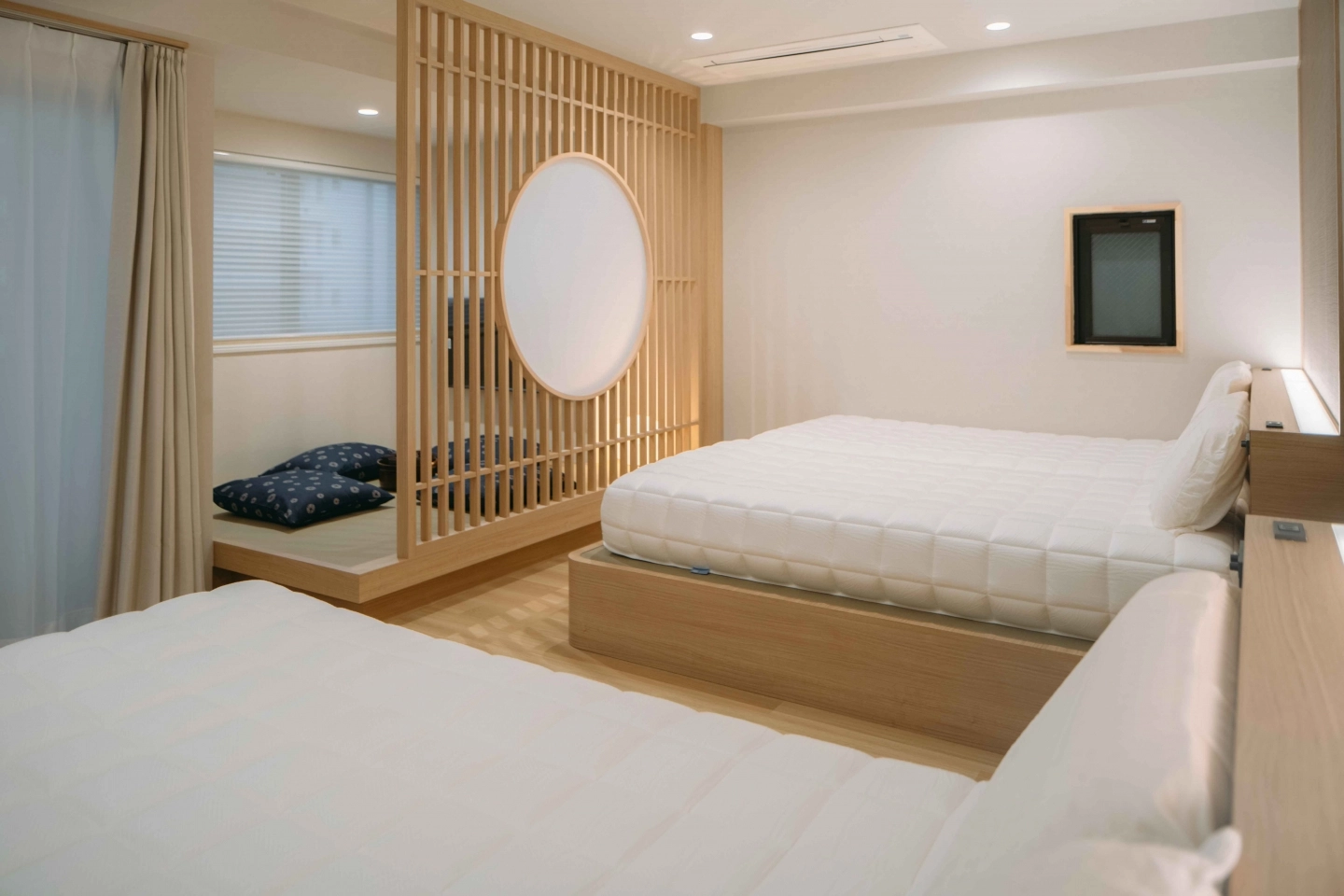 房間空間寬敞,採光良好,設計融合日式溫馨與現代機能,特別適合家庭或多人入住。房內配備完善,包含獨立衛浴、廚房、洗衣設備與齊全備品,讓您在旅途中也能像在家一樣自在放鬆。